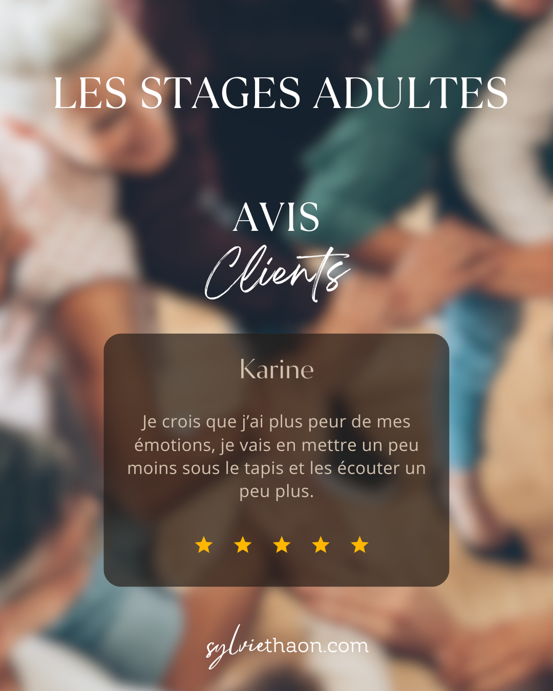 Participer à un stage, c’est bien plus que de s’offrir un moment pour soi. C’est plonger dans un espace de partage, d’écoute, d’exploration et de transformation profonde.