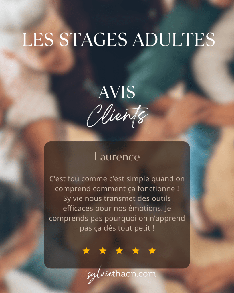 À travers des outils concrets, des exercices créatifs, et une approche humaine et bienveillante, ces stages permettent à chacun d’explorer ses émotions, d’apprendre à mieux se connaître et de repartir avec une véritable boîte à outils pour avancer dans sa vie avec plus de confiance, de sérénité et de clarté.