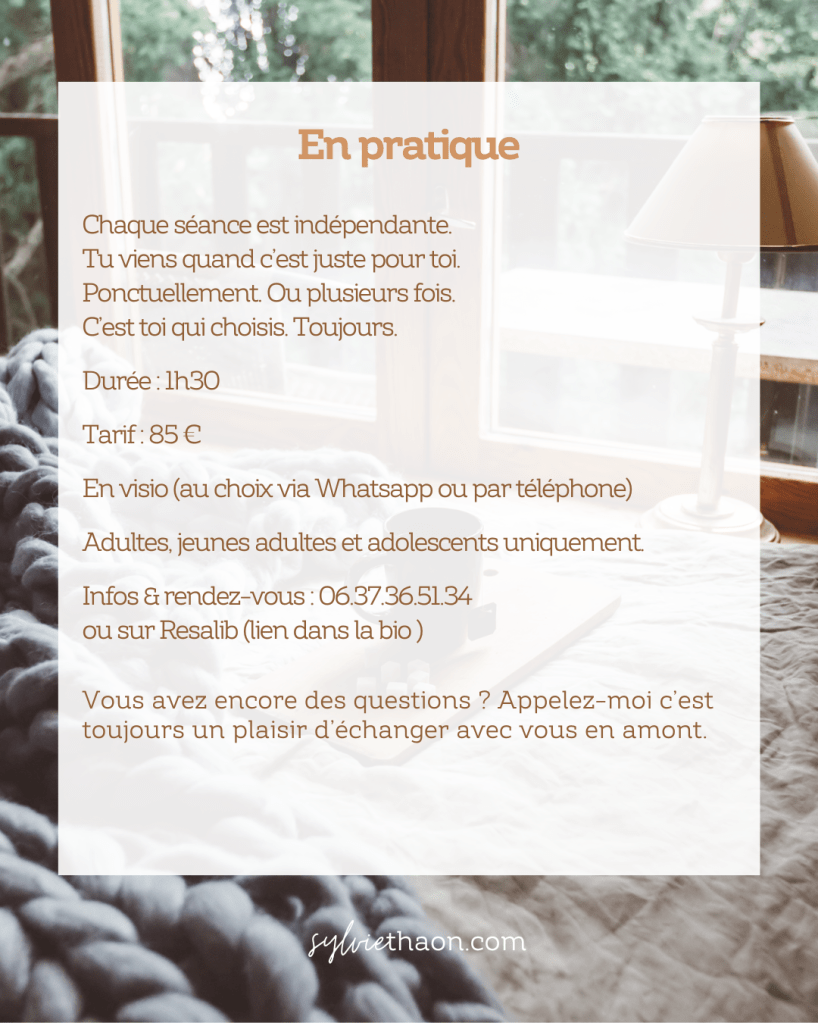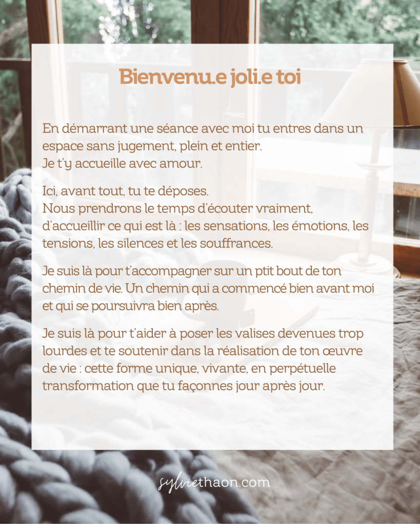 Je t’accompagne avec une écoute pleine, incarnée, respectueuse.